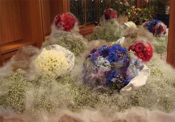 主宰者の土屋品子及び生徒による花展(作品展)を 一年に一度開催しています。 毎回異なるテーマをもとに、各自が思い思いのイメージを 作品に仕上げます。 デザイン画の作成から始まり、花選び、 全体のデコレーションにいたるまで、トータルして作品を表現します。 無心に花を生けることは、自分探しのひとときでもあります。 花を通して一緒に自分の新しい感性を発見してみませんか?